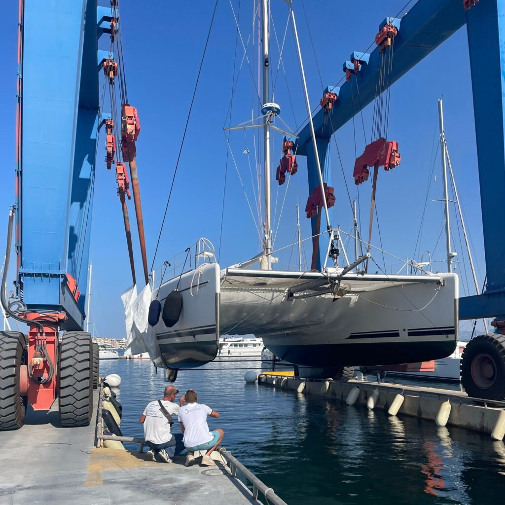 We made new holes for our Genacker!  Before our Bugssprit wasn’t functional because the holes…